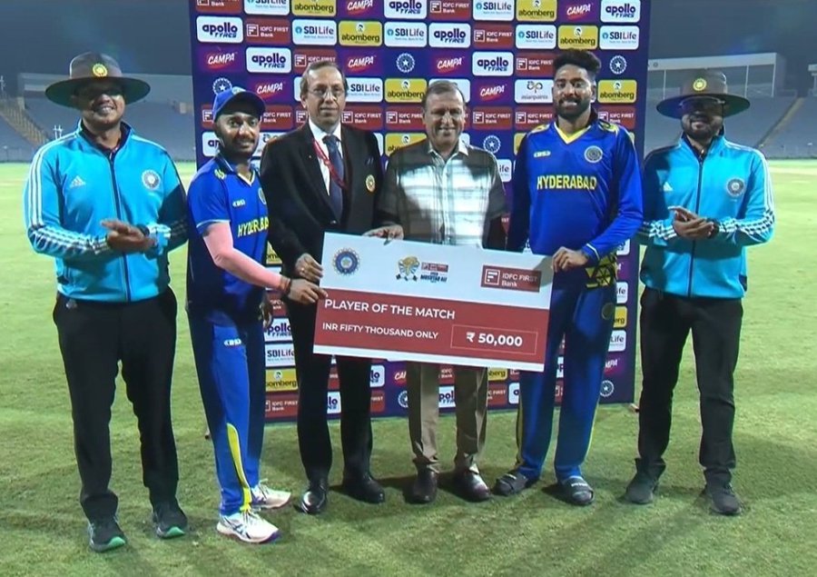 👉 सिराज ने अपना प्लेयर ऑफ द मैच अवॉर्ड तन्मय अग्रवाल के साथ शेयर किया।